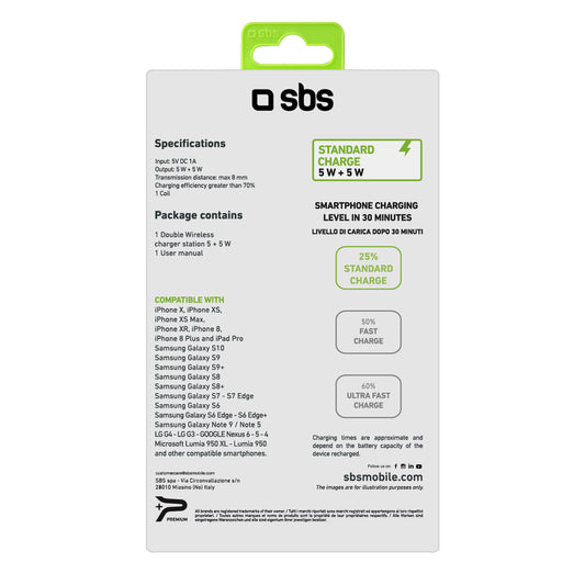 SBS Draadloos Opladen Dual Base 5W + 5W