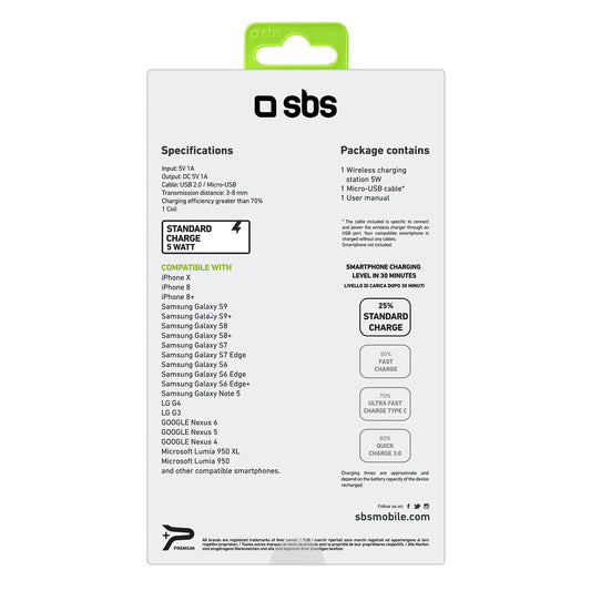 SBS Mobile Base QI-Draadloze Lader 5W - Wit