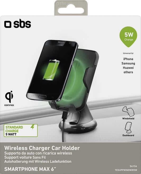 SBS mobile Dashboard Autohouder 6 Inch / Qi Lader 5W - Zwart