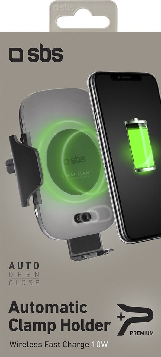 SBS Wagenhouder met draadloze oplader en klem - Zwart
